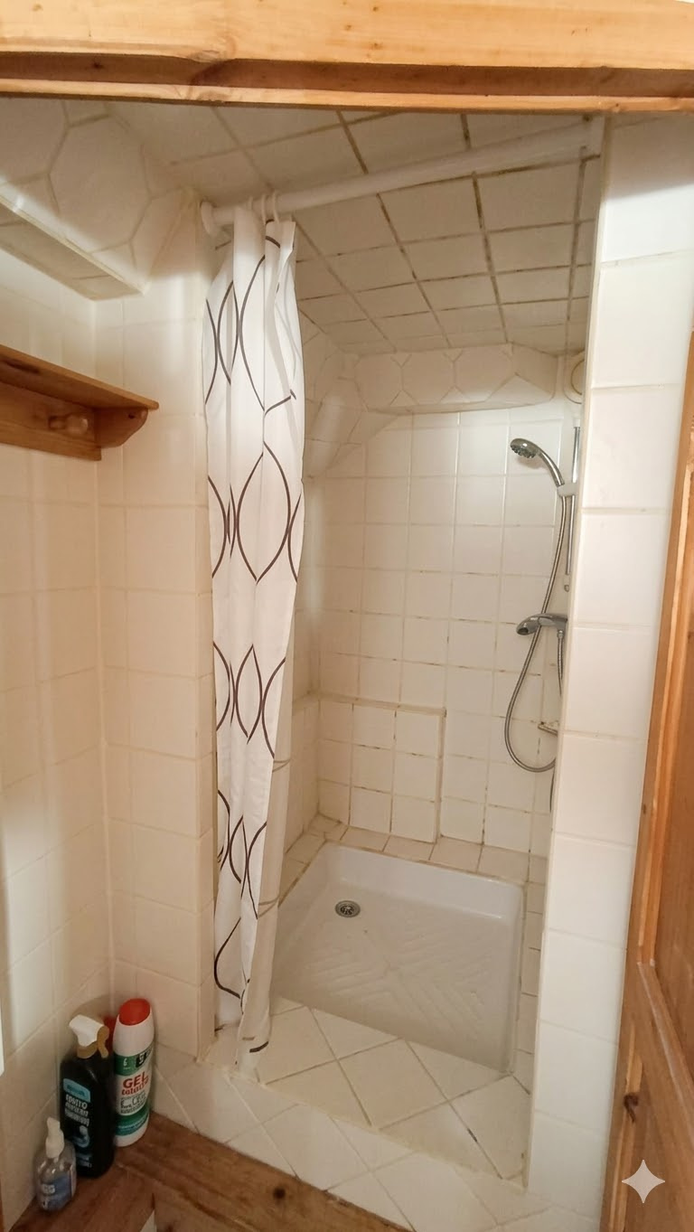 - Une mezzanine avec une chambre, douche et WC