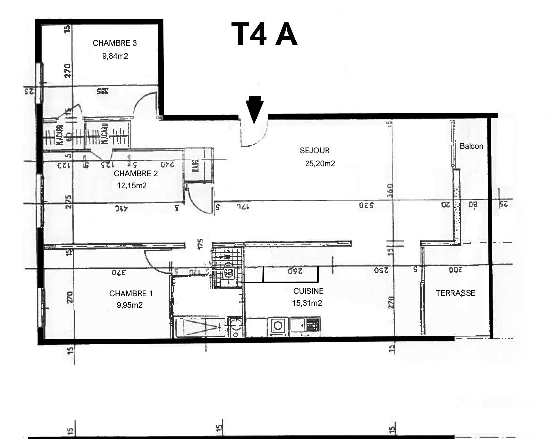 Le bien en très bon état général offre un grand espace de vie avec un double séjour cuisine ouvert sur une terrasse de 8m2, 3 chambres avec rangements, une salle d’eau et des WC séparés.