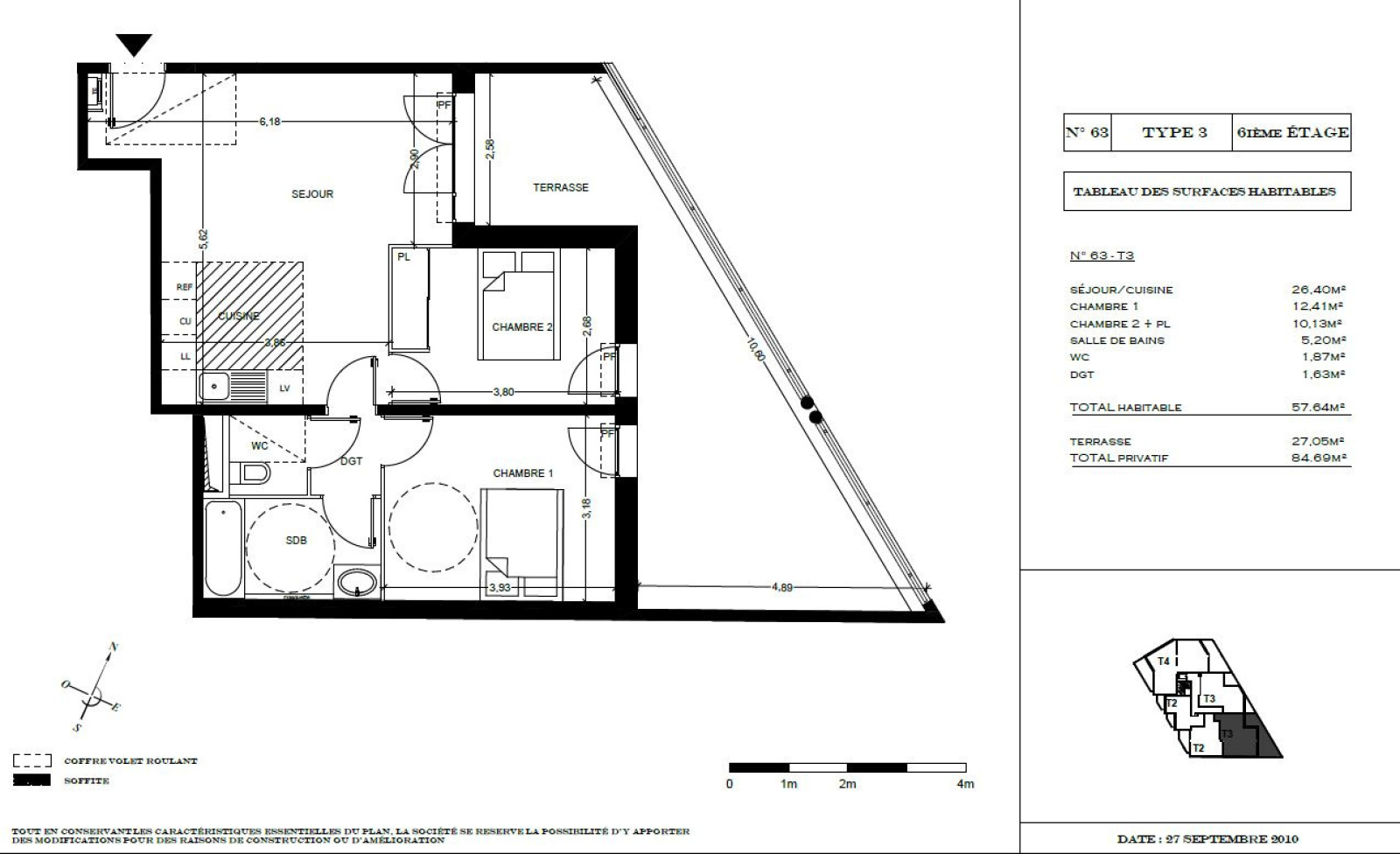 Marseille 13008, Quartier Le Rouet, au sein d'une résidence de standing fermée et sécurisée (construction 2010) bel appartement de Type 3 d'une superficie de 57.64m² prolongé par sa terrasse de 27m² et situé au 6ème étage avec ascenseur. Il se compose d'une entrée, une cuisine ouverte sur sejour, deux chambres avec placards (12.41m2/10.13m2), une salle de bains, un WC séparé et rangements; chaque pièce de l'appartement donnant directement sur la terrasse et sa vue dégagée. Bon état général, double vitrage, eau et chauffage individuel. Charges : 90€/mois. Une place de parking en sous-sol de l'immeuble complète le bien. Soumis au régime de la copropriété. Pas de procédure en cours. Pour plus d'informations, contactez le service Transaction du Cabinet DALLAPORTA.